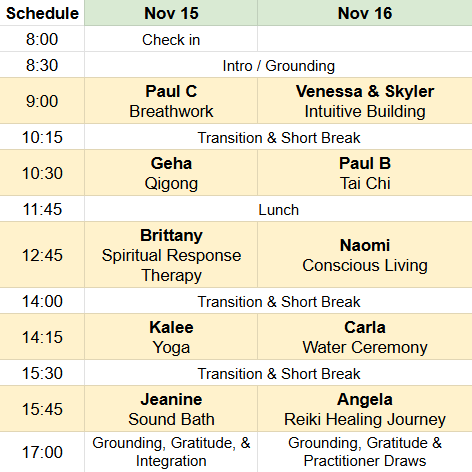 - 75-minute time slot to lead your modality/practice.